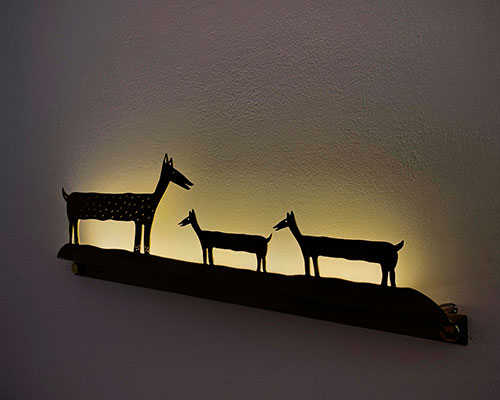 מנורת קיר עם משפחת כלבים היא תכשיט אומנותי לקיר, מנורת אווירה וקישוט לסלון, חדר שינה או חדר ילדים, מאירה בלילה ומשמחת ביום.