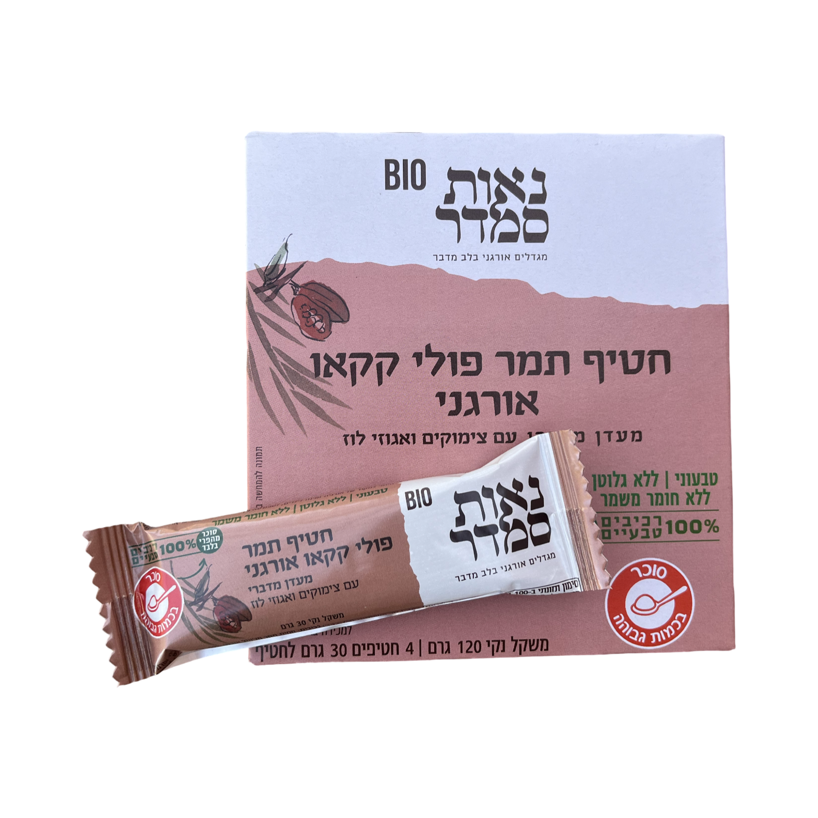 חטיף אנרגיה אורגני, בתוספת מזונות-על: שברי פולי קקאו ואבקת חרובים, בשילוב עם תמרים, אגוזי לוז וצימוקים, העשירים בברזל ובסיבים תזונתיים. מרכיבים טבעיים בלבד.
